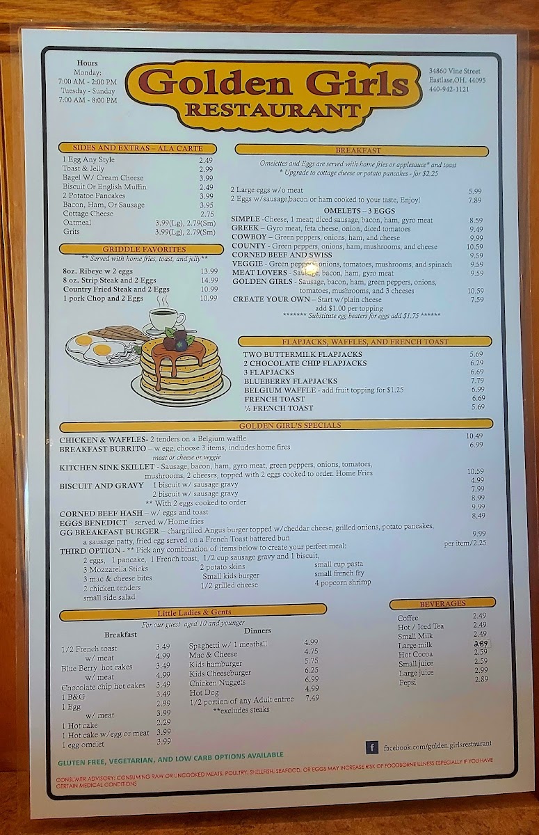 Welcome to Golden Girls Restaurant in Eastlake, Ohio, where nostalgia meets delightful dining! Located at 34860 Vine St, this charming eatery is adorned with vibrant memorabilia from the beloved TV series, creating a warm, inviting atmosphere.